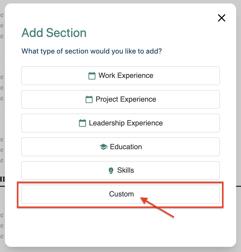 Looking to highlight additional certifications or important qualifications on your resume? You have the option to include more sections by going to "Add Section" and choosing "Custom". Please keep in mind that custom sections have a word limit. Our Resume Builder prioritizes a clean and concise format, hence these limits are in place.