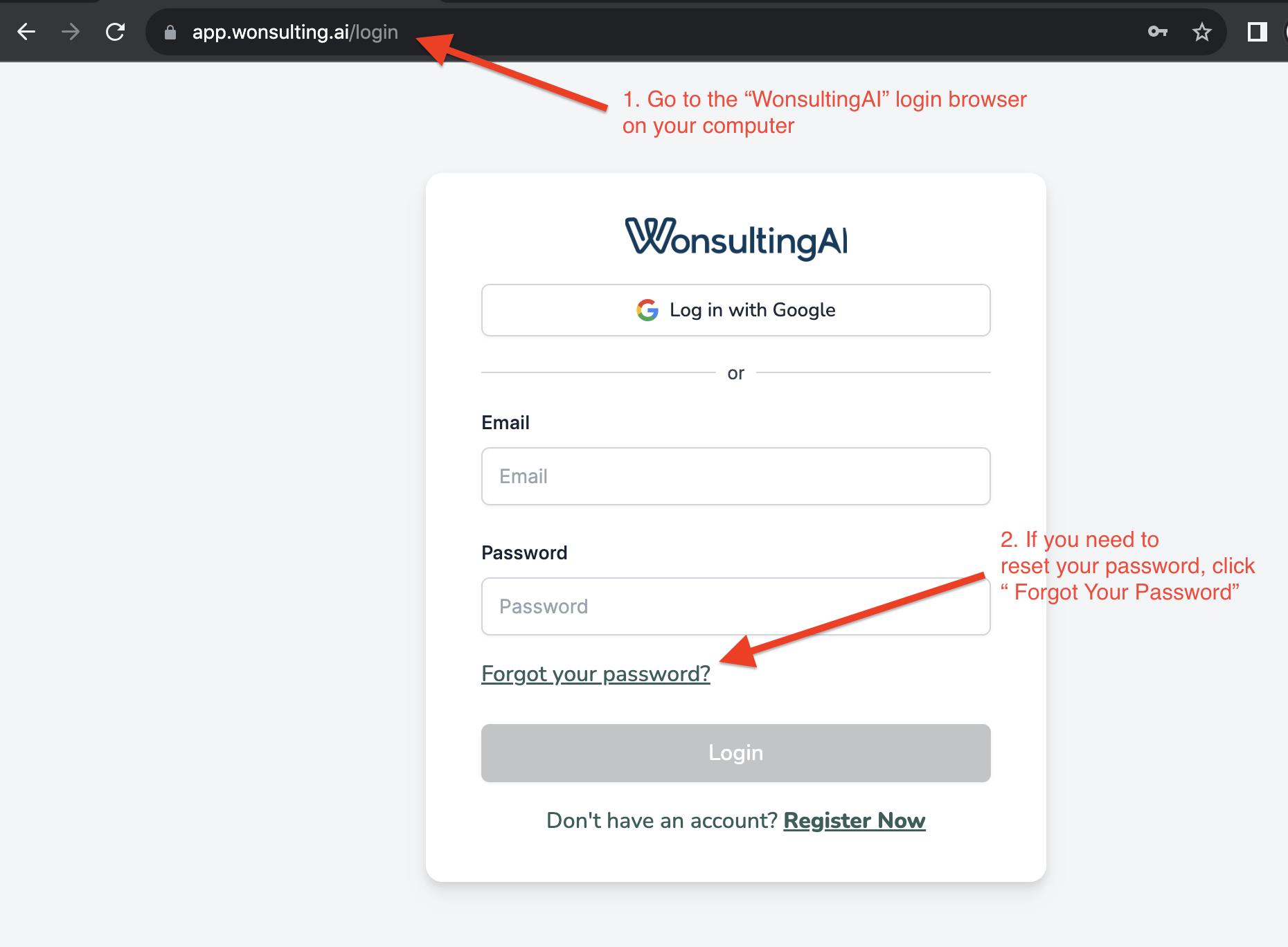 You've encountered a bit of a hiccup trying to log in to WonsultingAI. No worries, we're here to help you get back on track!